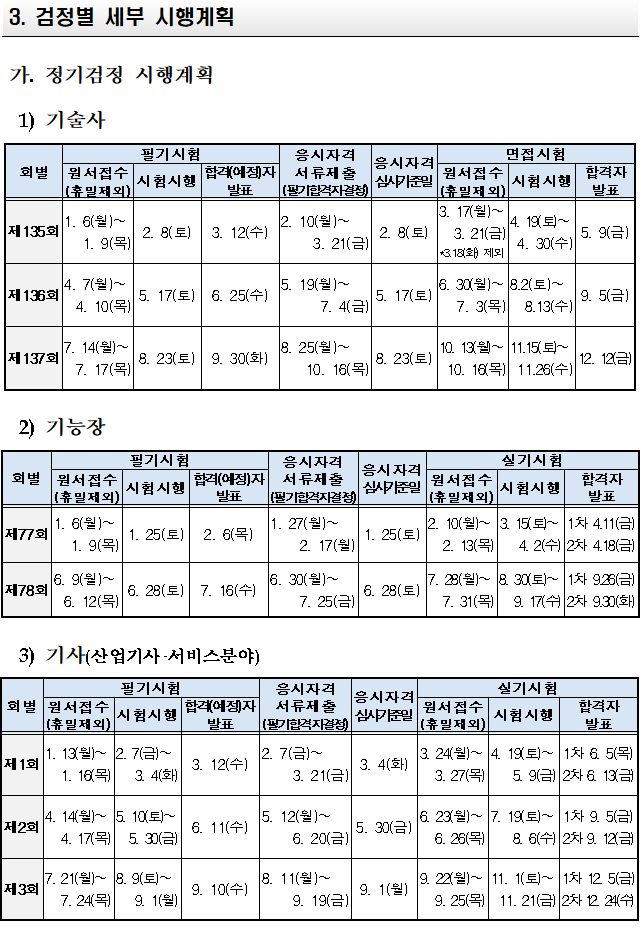 기사 제1회 시험시행(필기) 2월 7일 금요일 ~ 3월 4일 화요일